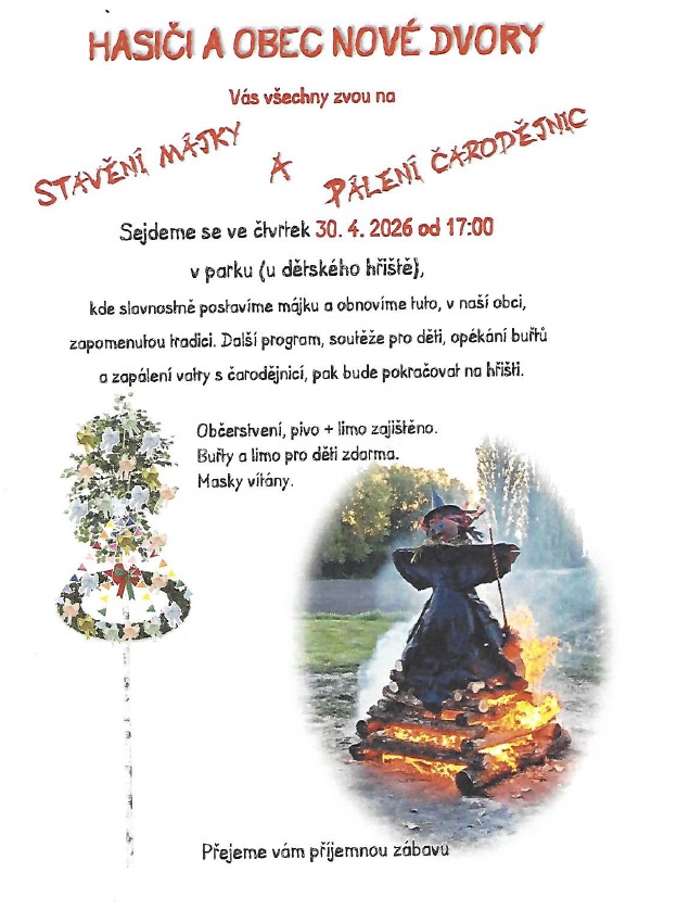 Vážení spoluobčané, srdečně Vás zveme na pálení čarodějnic.